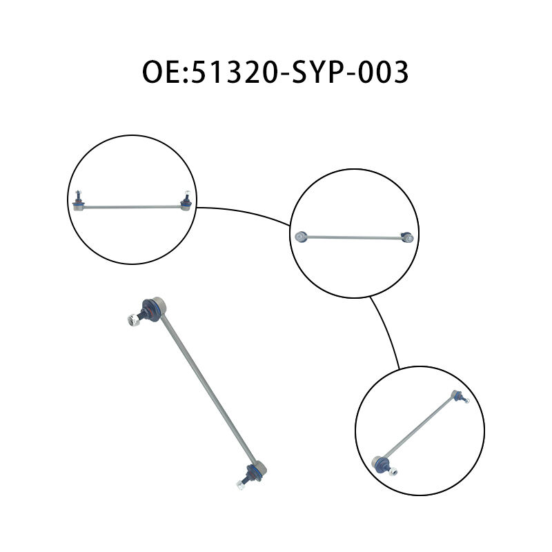 وصلة مثبتة متينة ومصممة بدقة (رقم القطعة 51320-SYP-003) مصممة لاستعادة استقرار المركبة وتقليل ميلان الهيكل وضمان أداء توجيه آمن وسلس. بديل مثالي لربطات قضيب التوازن البالية أو الصاخبة.